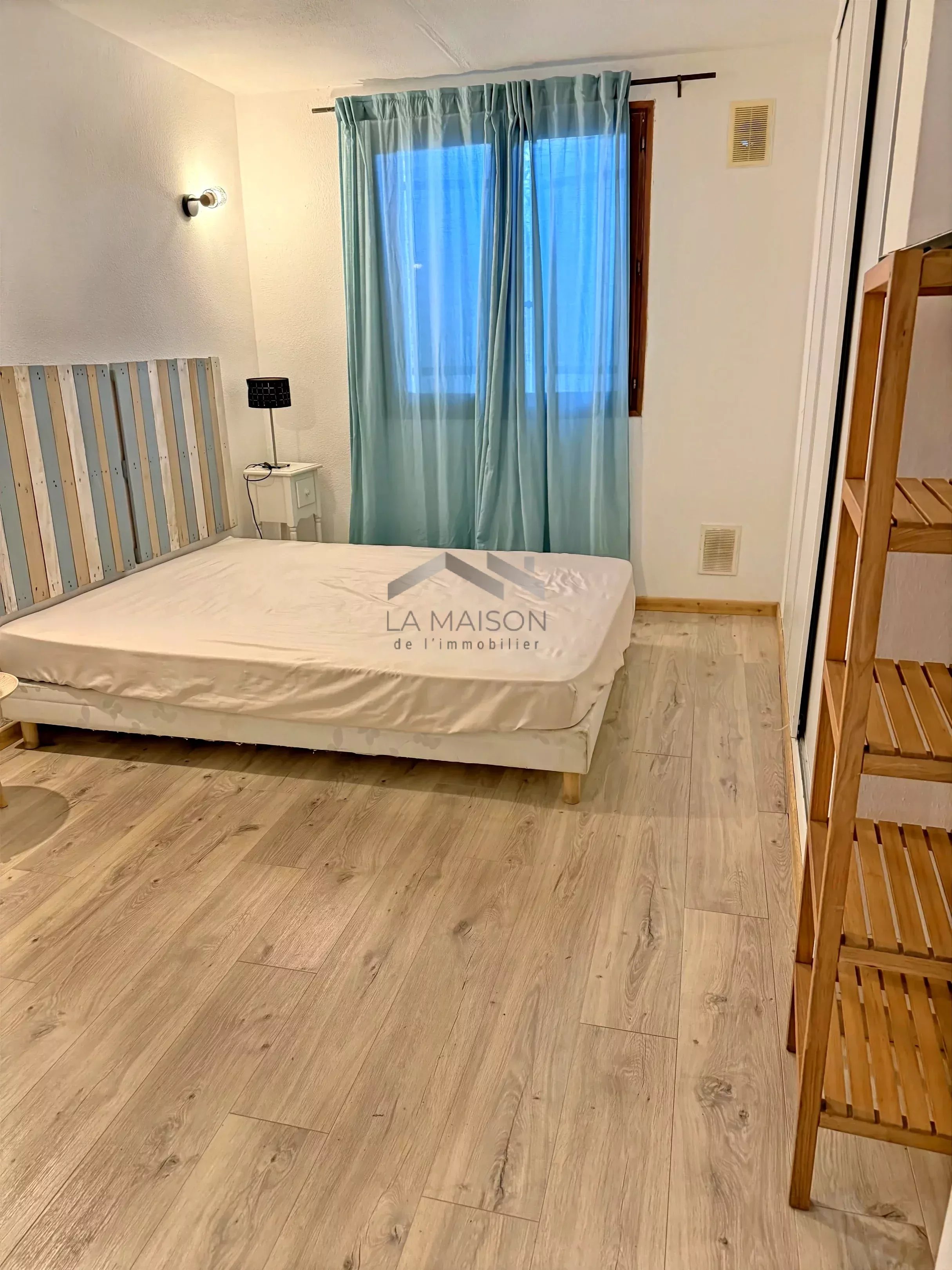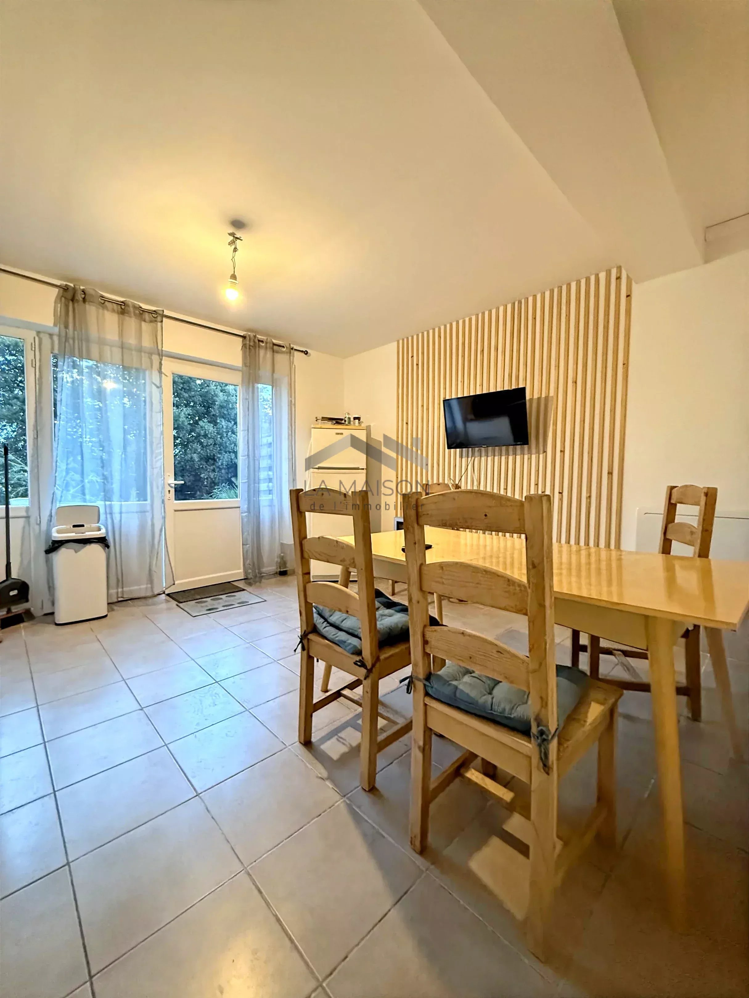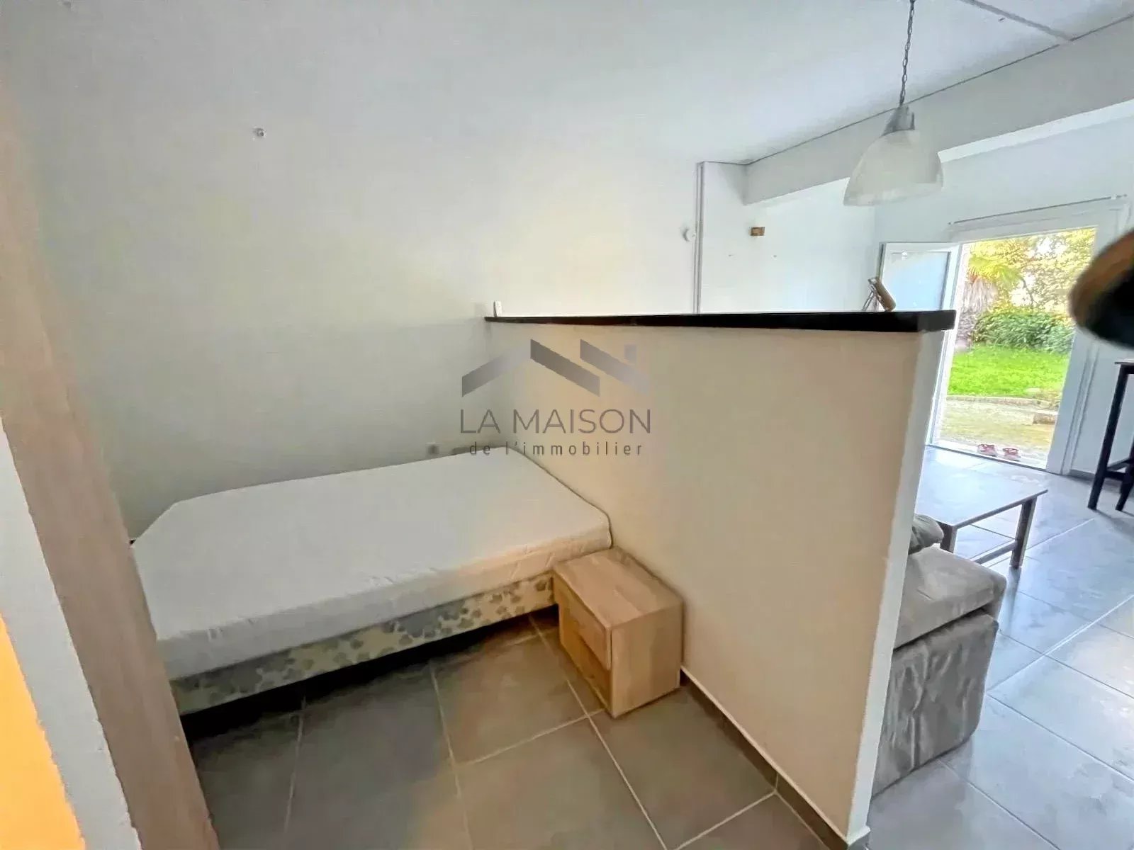 Le studio, également situé en rez-de-jardin, d'une surface de 25 m², comprend une pièce de vie salon-séjour-cuisine avec espace nuit et une salle d'eau avec toilettes.