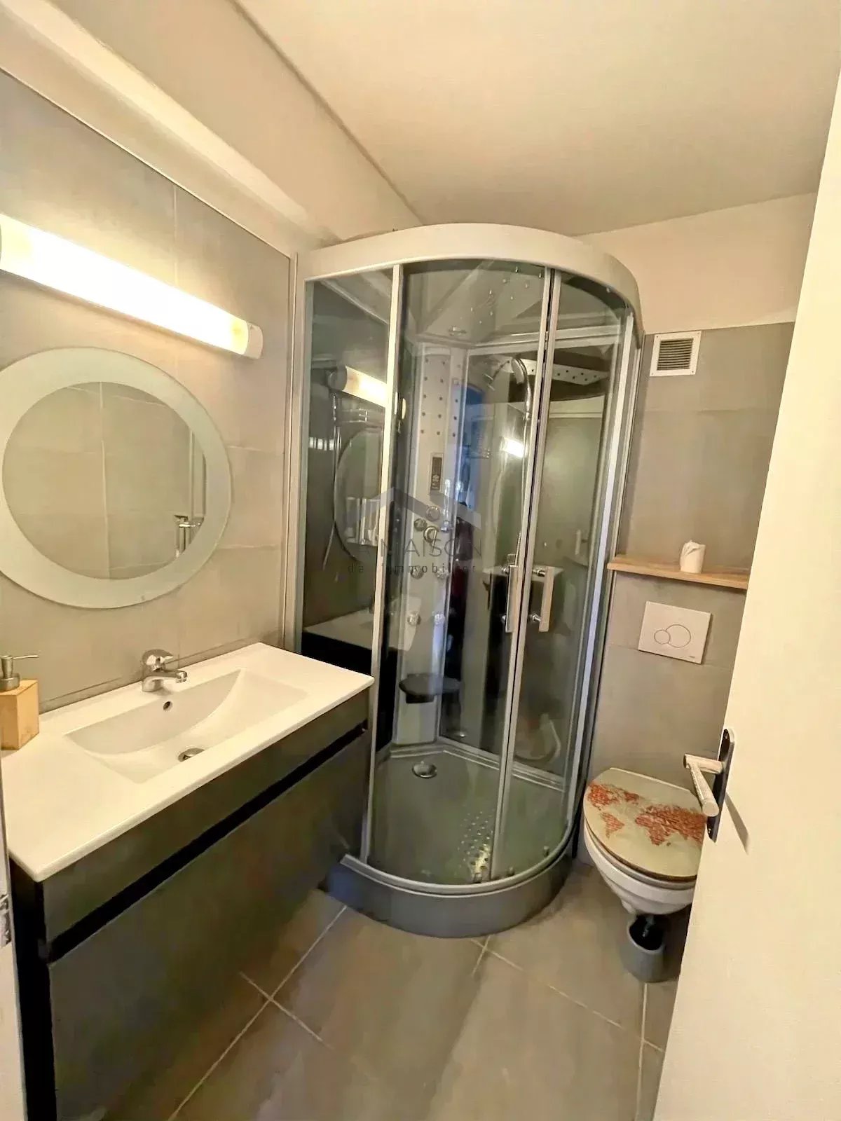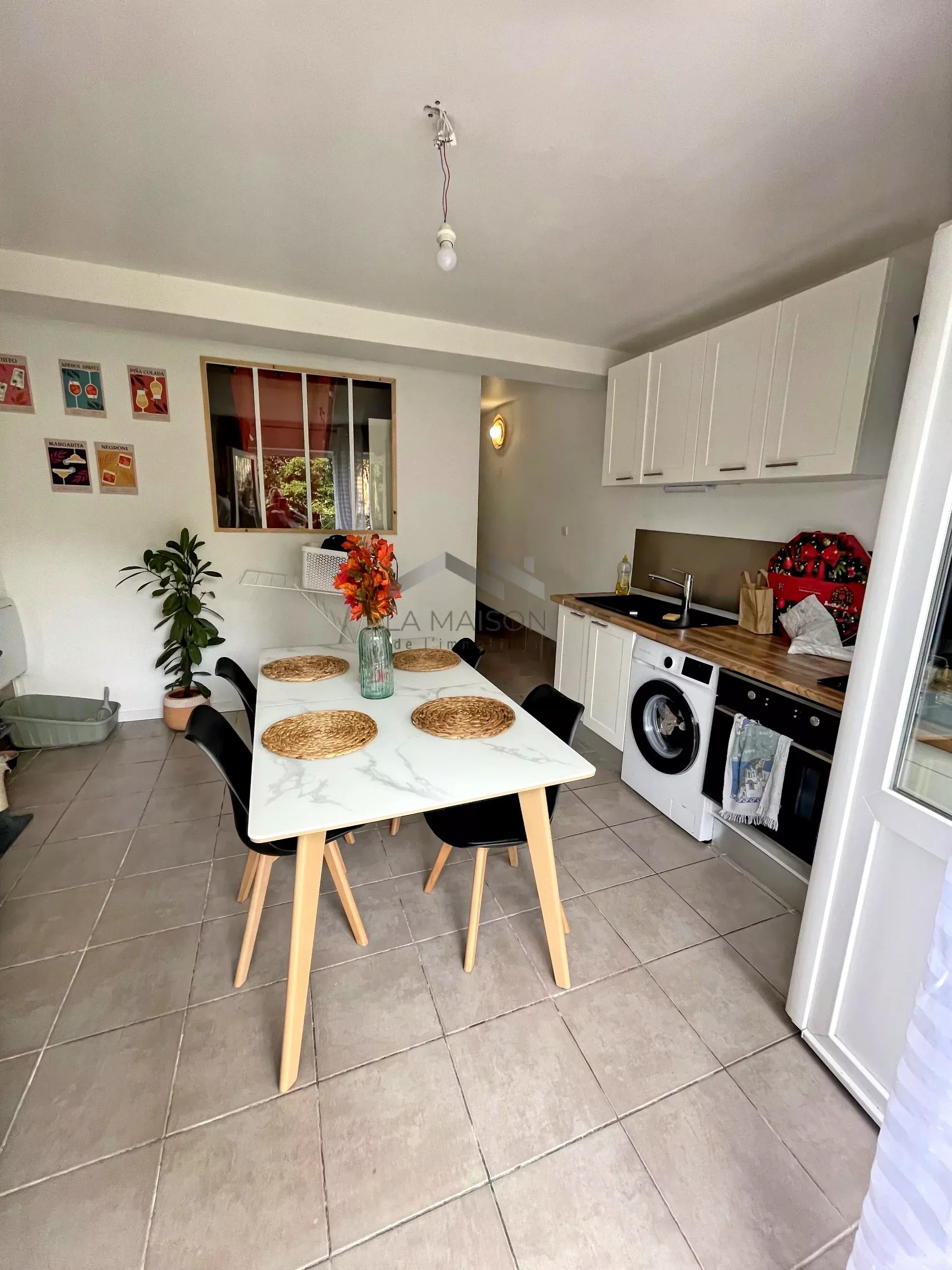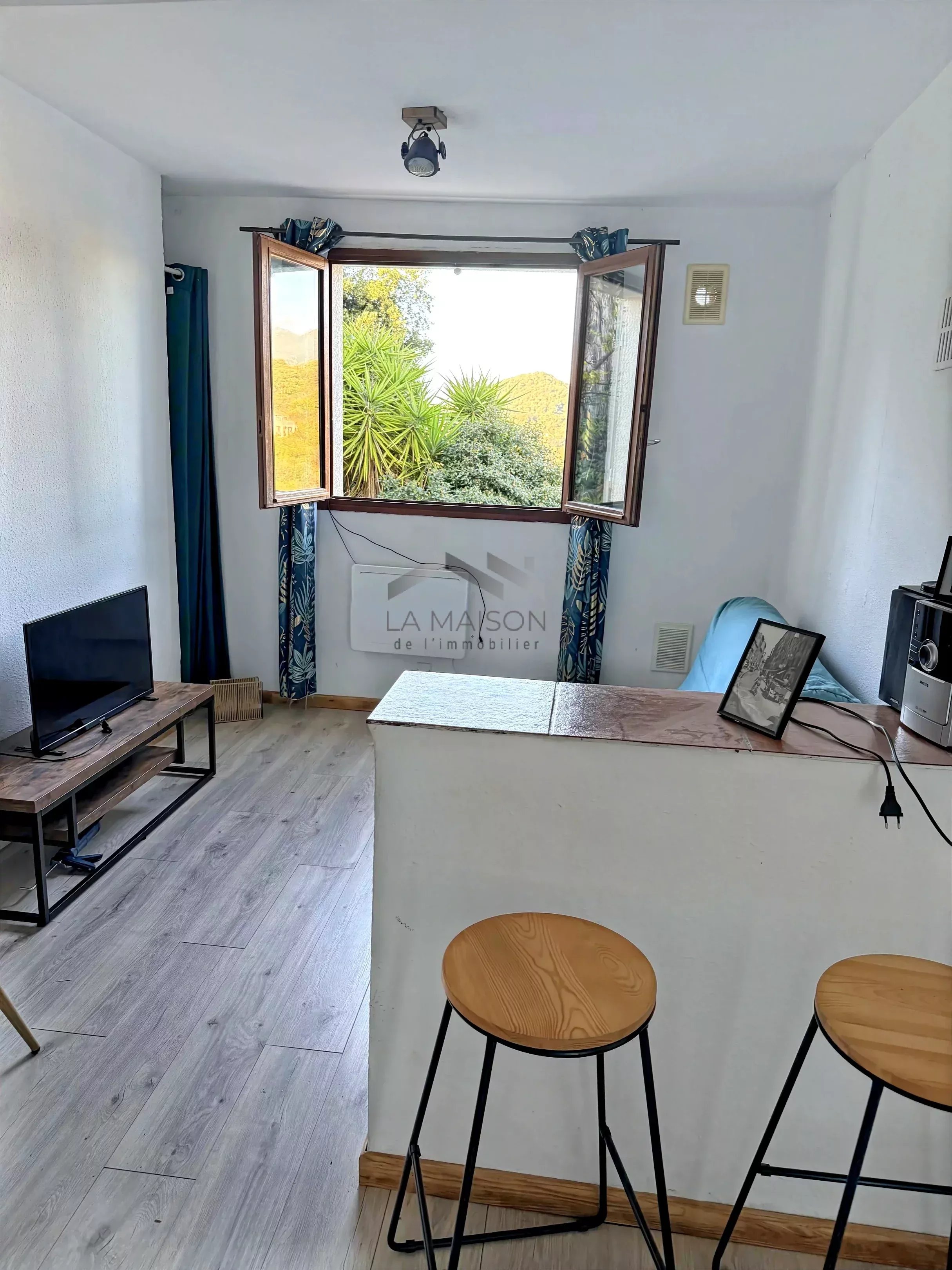 Le studio, également situé en rez-de-jardin, d'une surface de 25 m², comprend une pièce de vie salon-séjour-cuisine avec espace nuit et une salle d'eau avec toilettes.