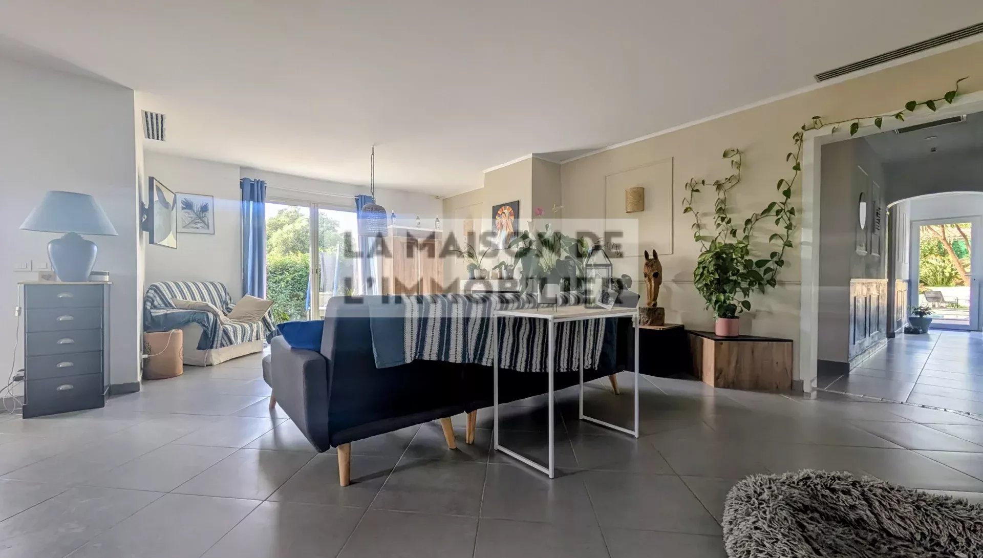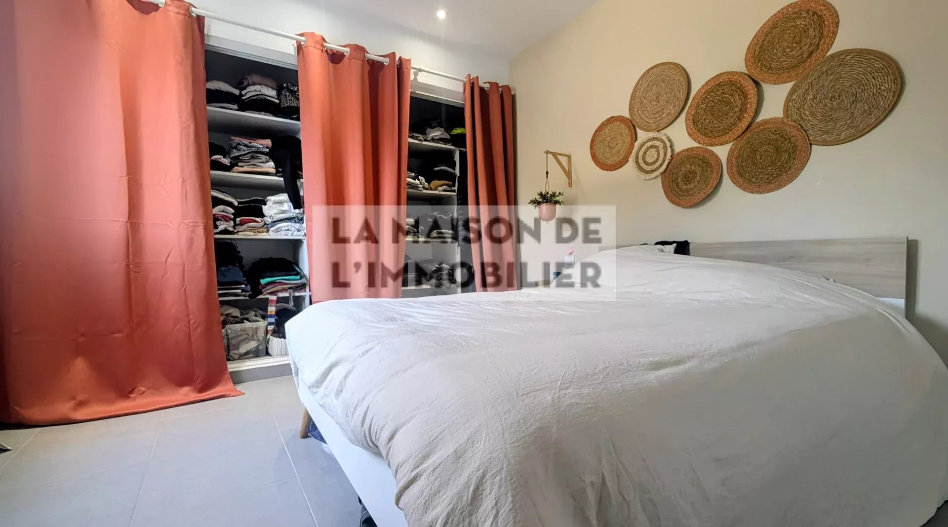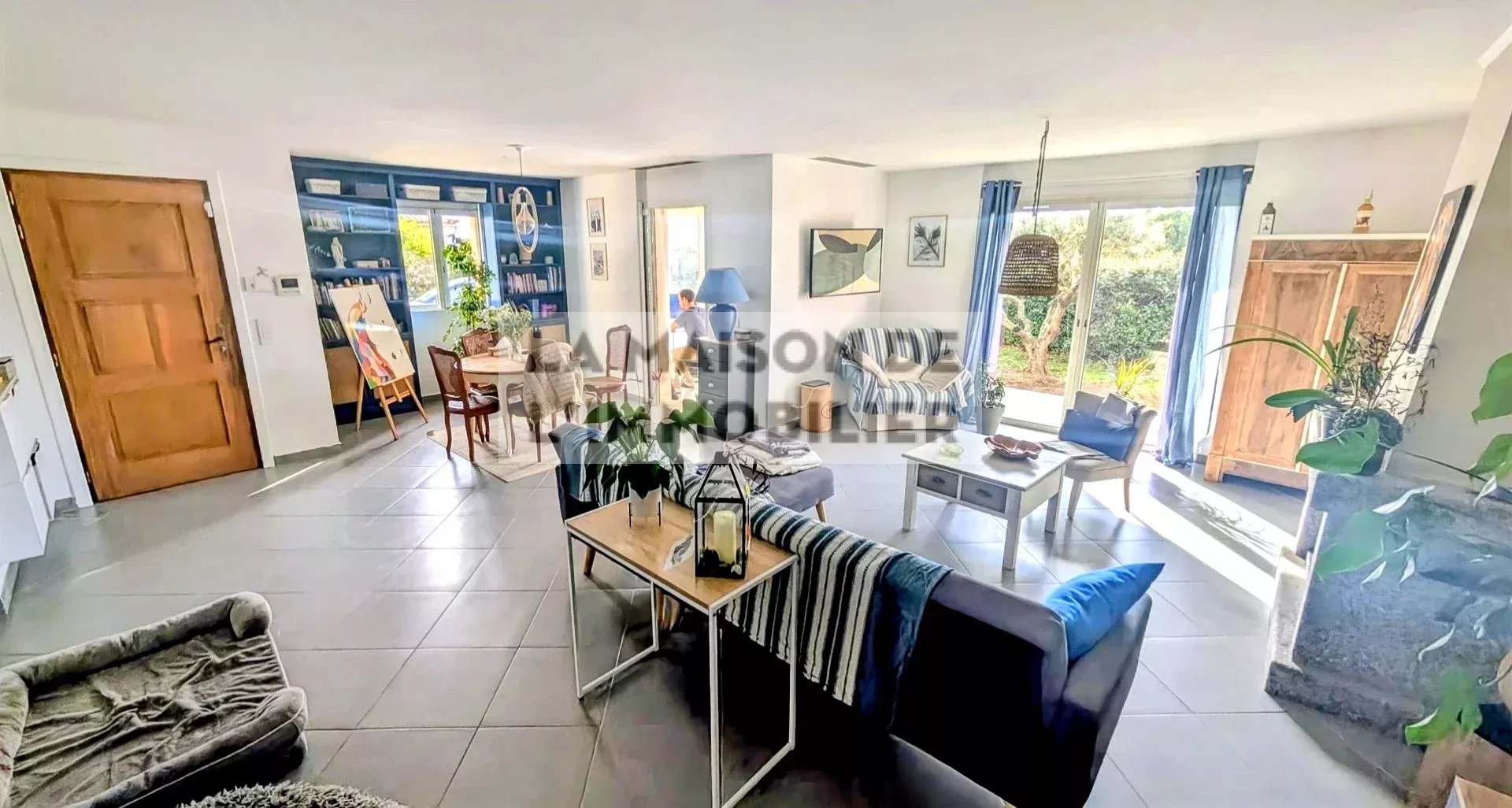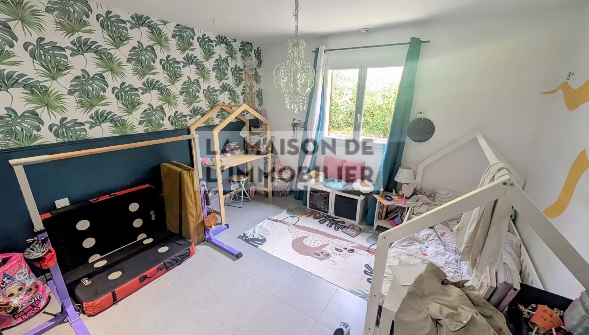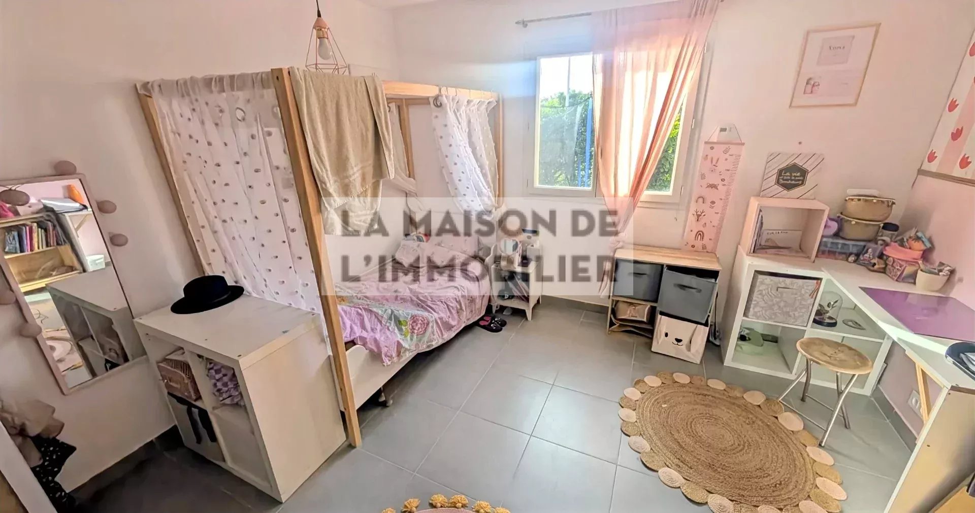Cette habitation aménagée avec goût, dispose d'un grand espace séjour, salon, cuisine équipée, d'une loggia, d'un cellier, de trois chambres avec de grandes penderies, dont une chambre avec salle d'eau, de deux cabinets de toilette, d'un garage compris dans le volume du bâti et pouvant être facilement aménagé en pièce supplémentaire, d'une piscine avec terrasse et d'une cuisine extérieure couverte et équipée.